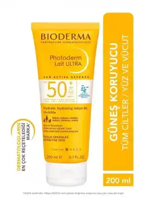 Bioderma Photoderm Lait Ultra Tüm Ciltler SPF50+ Yüksek Koruma Süt Form Yüz Vücut Güneş Kremi 200 ml