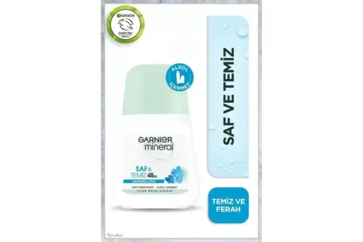 Garnier Mineral Saf ve Temiz Roll-On Deodorant, gün boyu ferah ve güvende hissetmek isteyenler için ideal bir seçenektir.