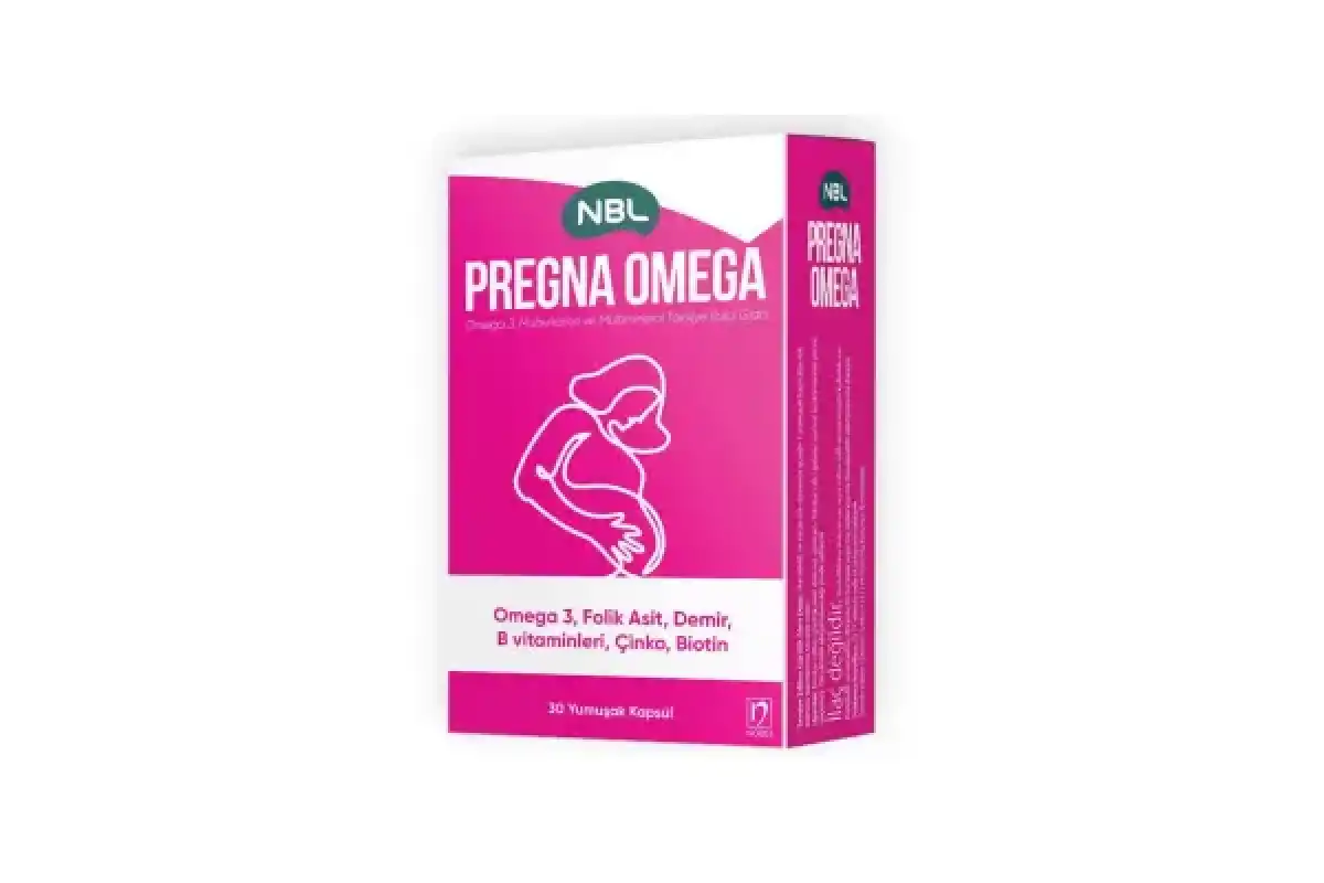 NBL Pregna Omega, gebelik döneminde anne ve bebeğin sağlıklı gelişimi için özel olarak formüle edilmiş bir besin takviyesidir.
