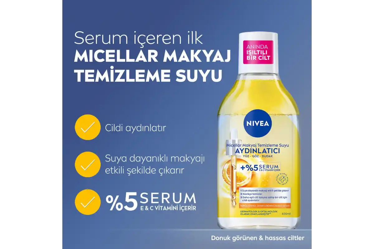 Nivea Aydınlatıcı Micellar Makyaj Temizleme Suyu Serum İçerikli Donuk ve Hassas Cilt Tipleri 400 ml