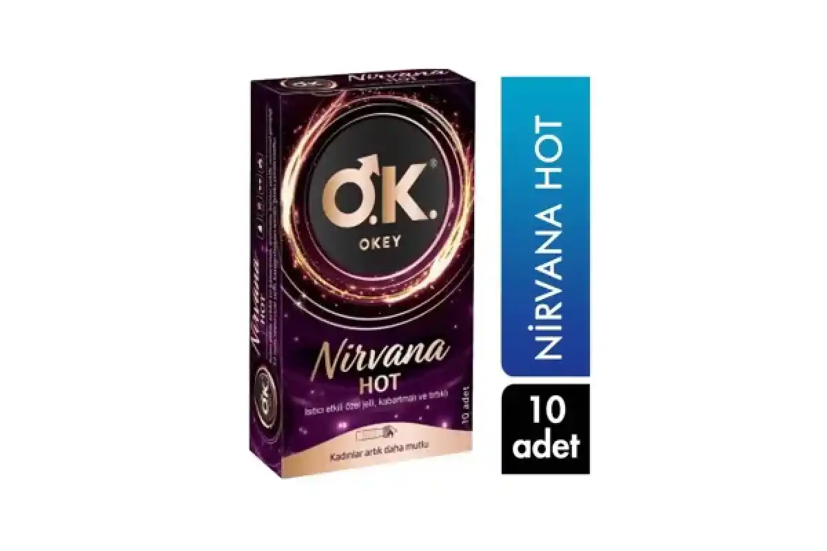 Okey Nirvana Hot Prezervatif 10 Adet, cinsel sağlık ürünleri kategorisinde yer alan bir üründür. Okey güvencesiyle sunulan bu prezervatifler, özel dizaynıyla kullanıcılarına maksimum koruma ve konfor sağlar. Ürünün özellikleri şunlardır: