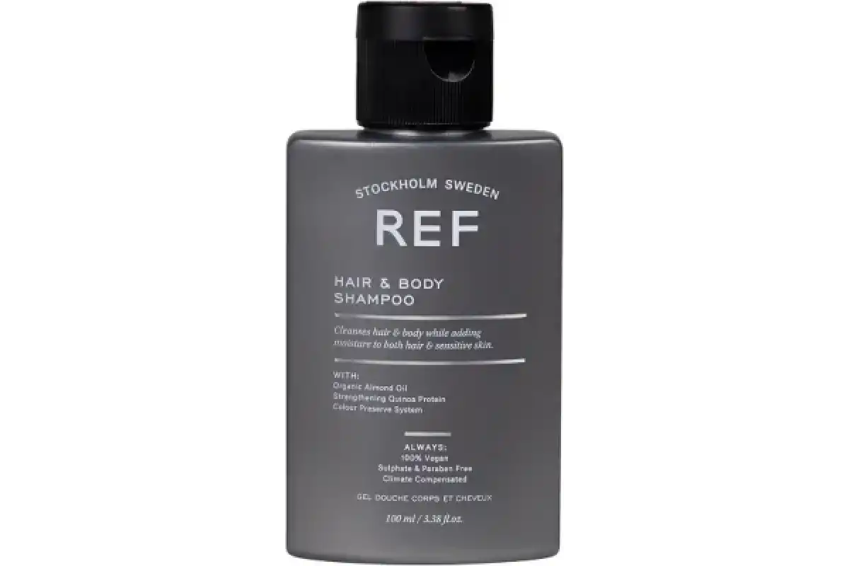 REF Saç & Vücut Şampuanı, saç ve vücut için bir arada kullanım sunan kompakt bir temizlik ürünüdür. Bitkisel özler ve nemlendirici bileşenlerle formüle edilmiştir ve seyahat için ideal boyuttadır.