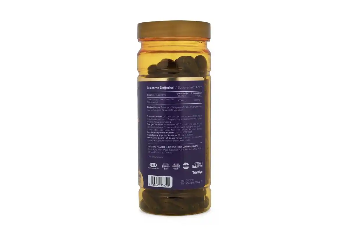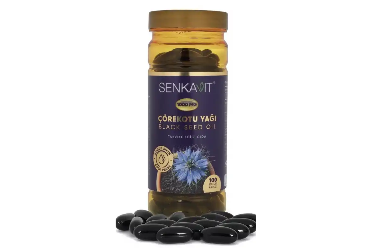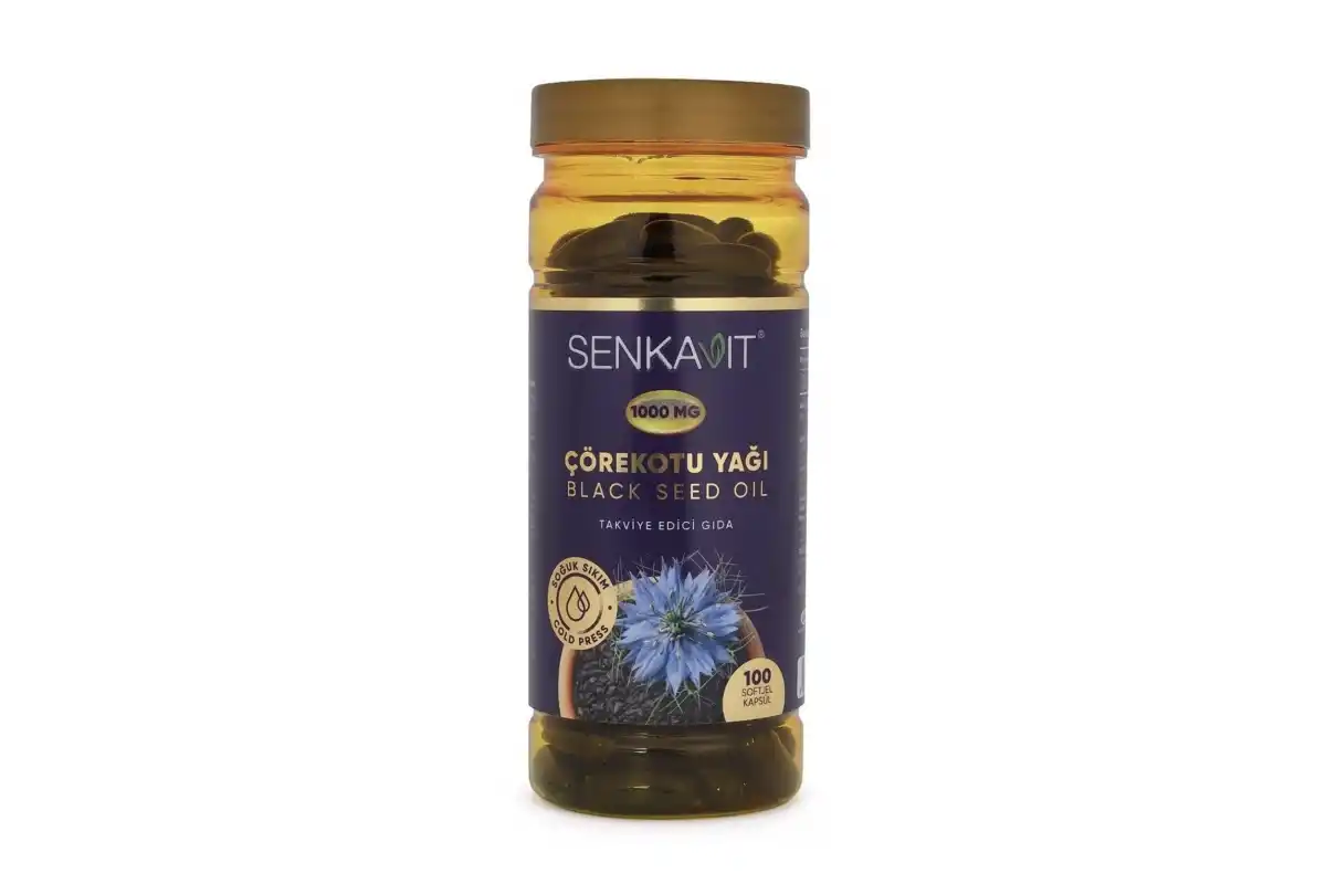 senkavit Çörekotu Yağı 1000 Mg takviye edici gıda 100 kapsül Çörekotu Yağı Soğuk Sıkım Yöntemiyle Üretilmiştir.