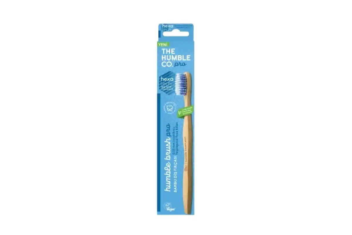 The Humble Co Hexatech Pro Yetişkin Diş Fırçası, üstün temizlik için tasarlanmış hassas yapıda bir fırçadır. Altıgen başlık yapısı sayesinde diş yüzeyine ve diş eti çizgisine daha geniş ve etkin temas sağlar. Yumuşak kıllarıyla nazik ama derinlemesine temizlik sunar ve günlük ağız bakım rutininize şık bir dokunuş katar.